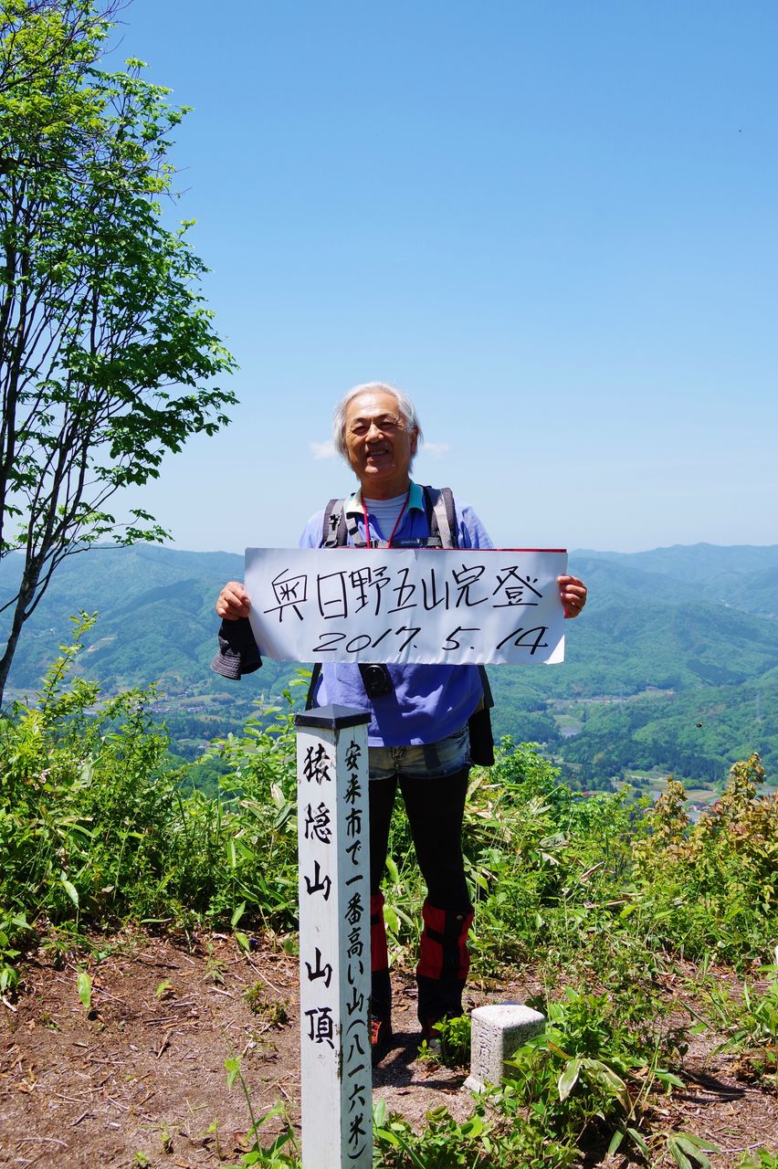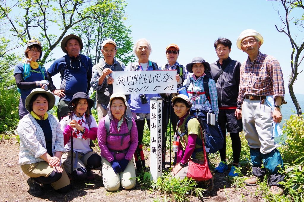 史上三人目の奥日野五山登頂達成! 2017年05月14日 奥日野ガイド倶楽部、春の奥日野五山登頂イベントが本日無事に終了しました。ほぼ週替わりで山々を登ってきましたが、今季、全ての山に登頂したツワモノが登場!奥日野ガイド倶楽部史上、三人目の快挙です。おめでとうございます~。山頂にて、素敵な笑顔をいただきました。その後、みんなで記念撮影。今季の登頂イベントはこれにて終了。次回はまた秋にお会いしましょう! 「お知らせ」カテゴリの最新記事 < 前の記事次の記事 >